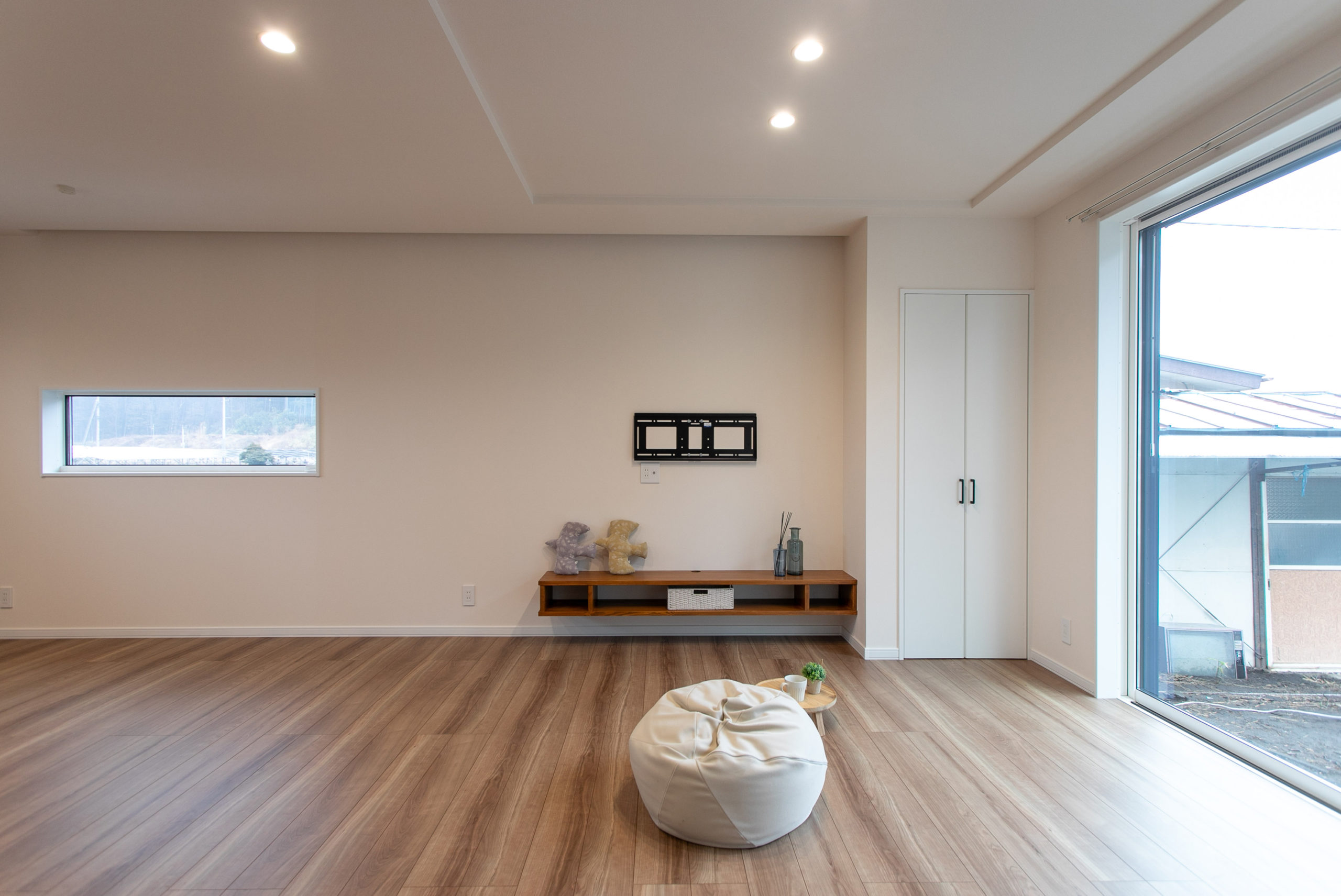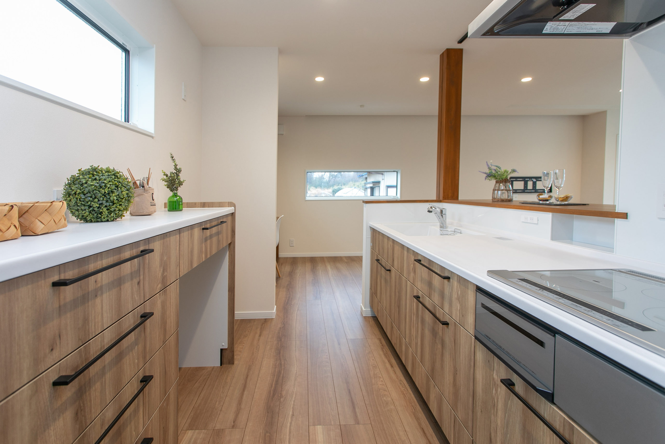 リビング。造作のカウンター。テレビは壁掛けにします。カウンター横はリビング収納。