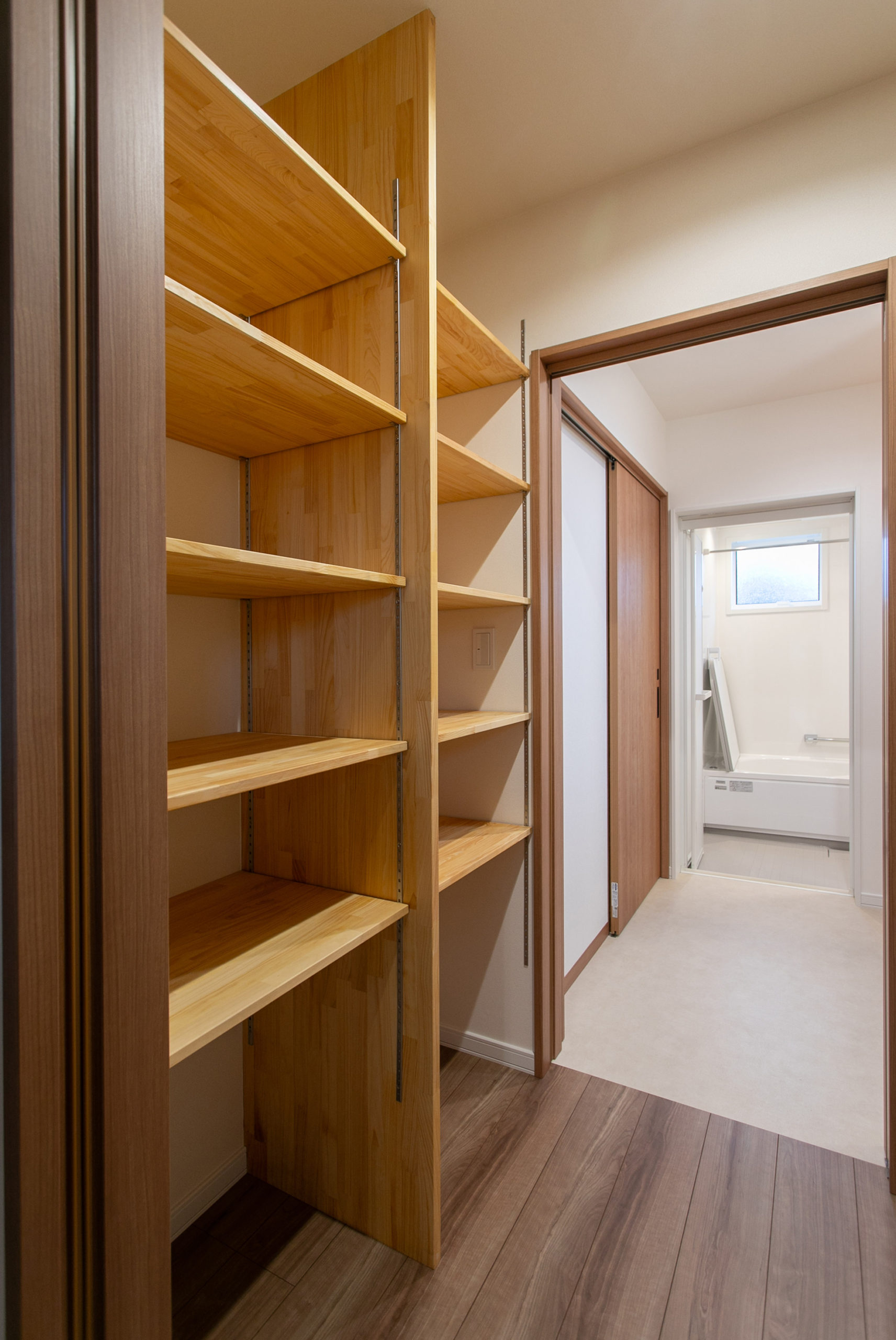 脱衣室に隣接するファミリークローゼット