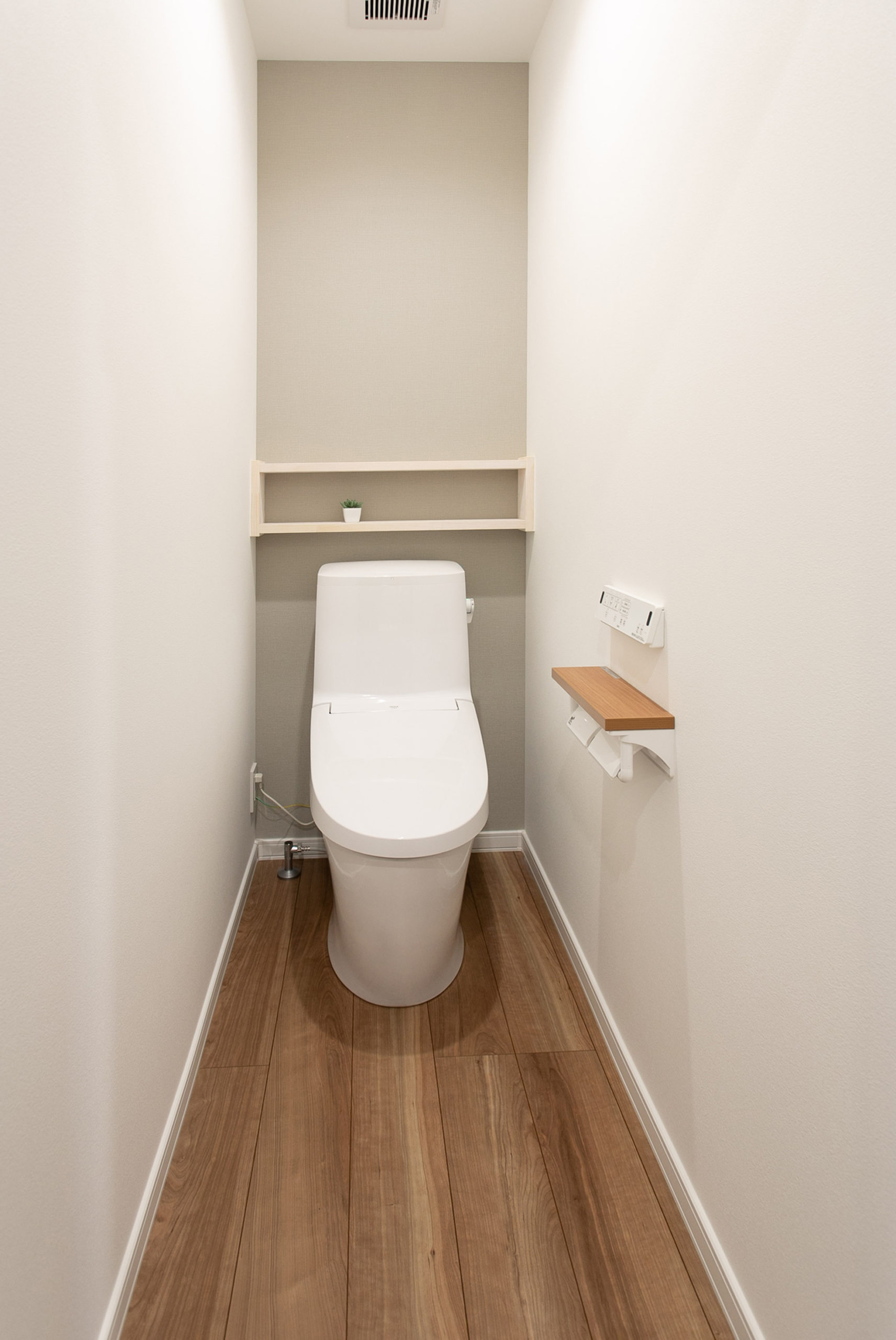 トイレットペーパーやお気に入りのものも置ける棚を造りました。