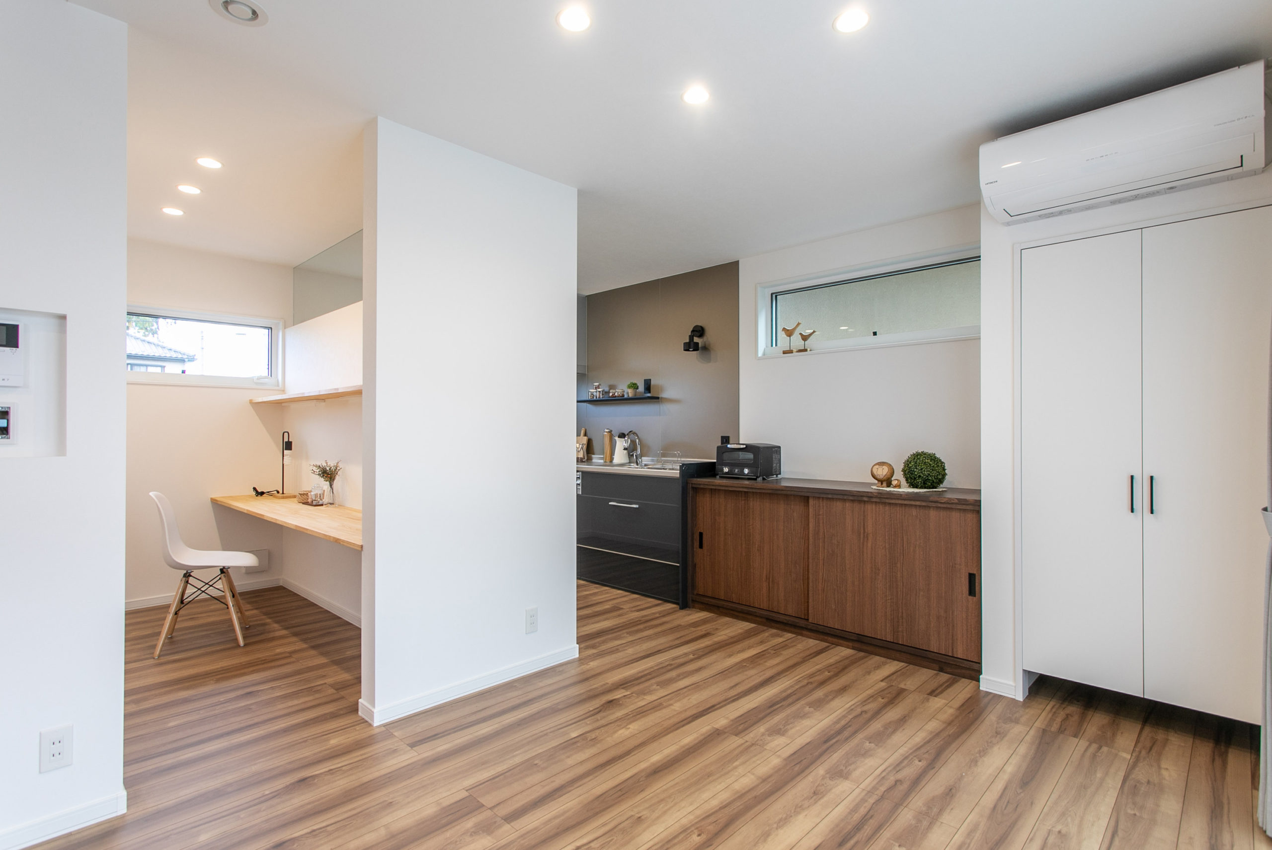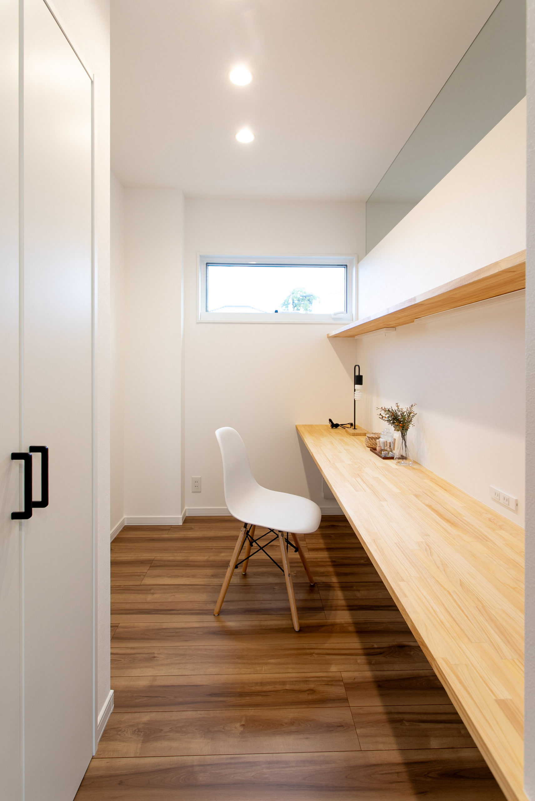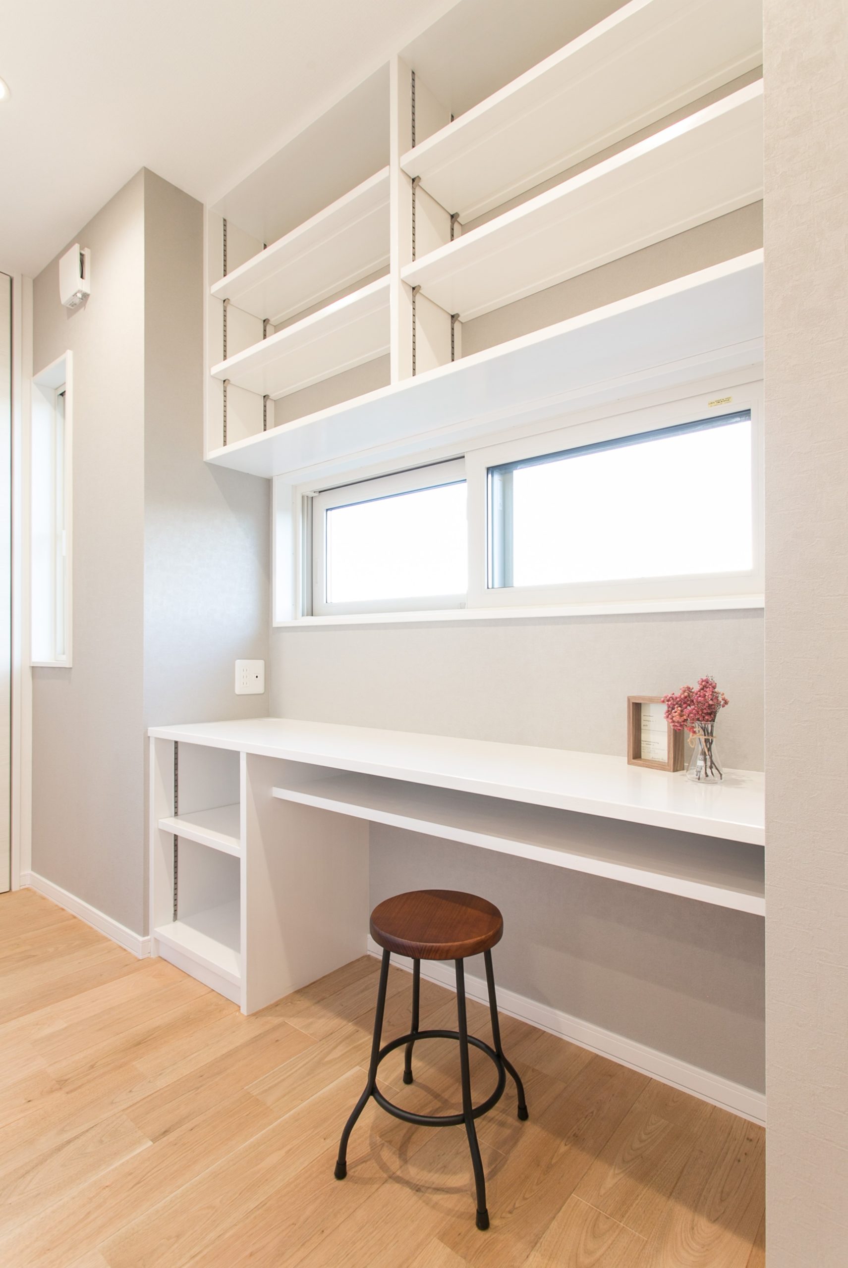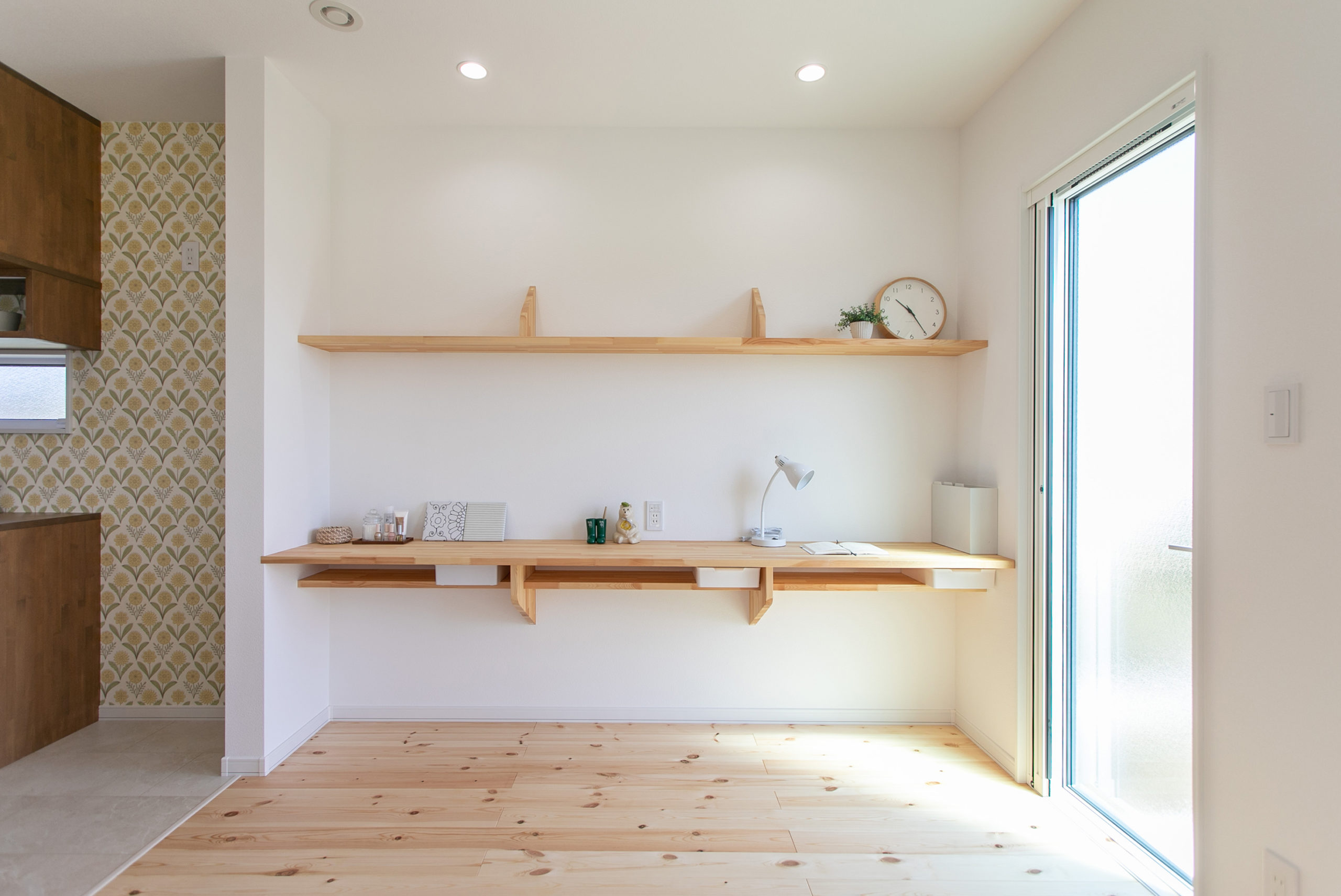 - キッチン脇にあるスタディコーナー。収納も充実。